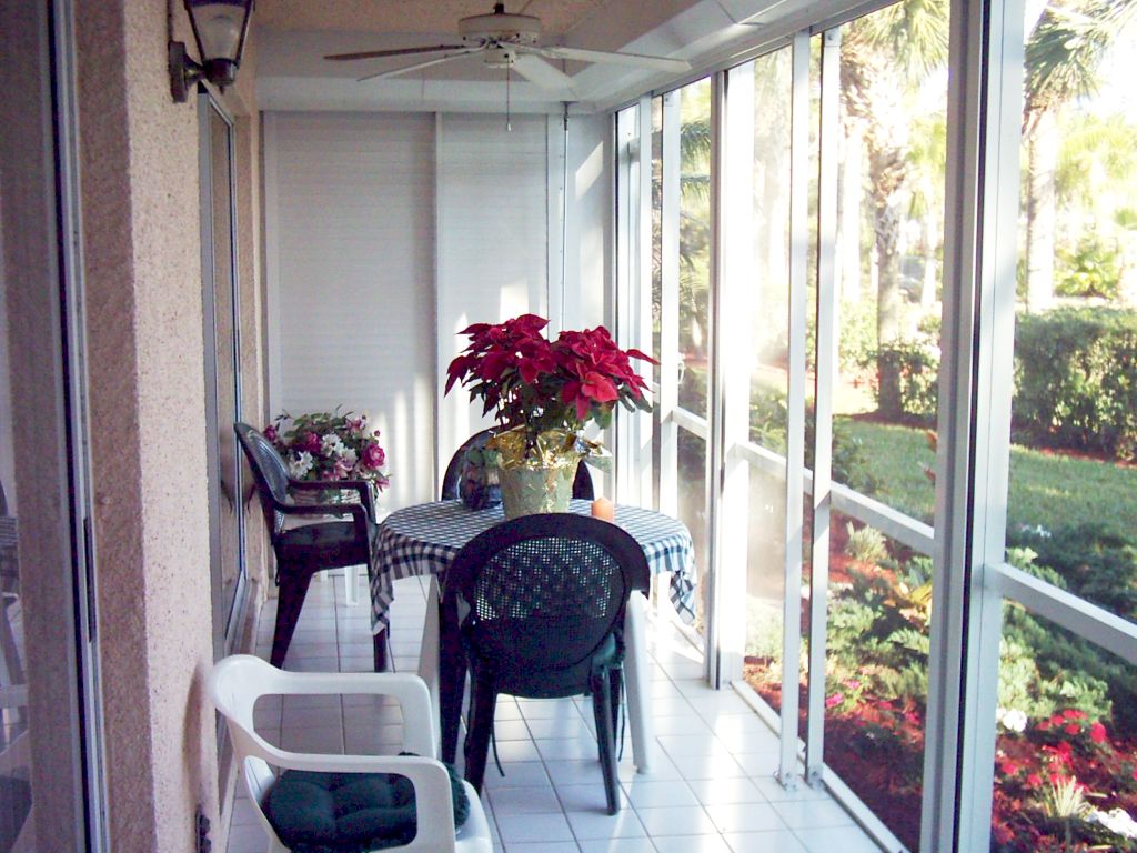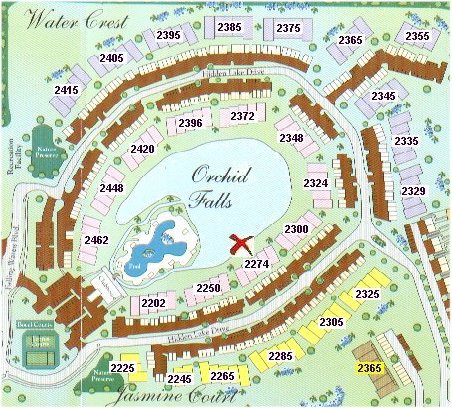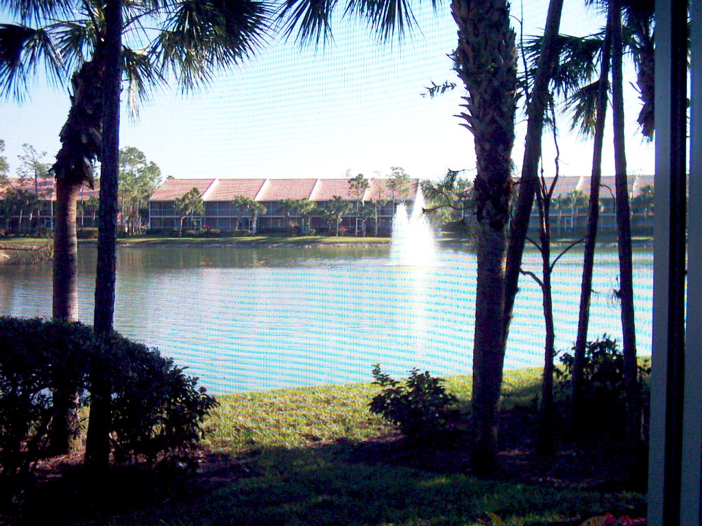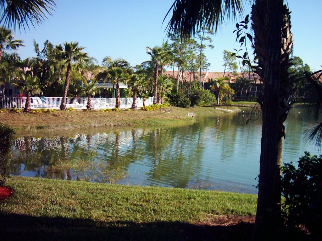 From the rear lanai you can see the huge pool of FALLING WATERS. It is less than 300 yards to the entrance of the pool. |